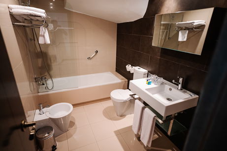 This elegant room offers modern décor, air conditioning/heating, wooden floors, free Wi-Fi, a separate lounge with TV and a private bathroom. Double bed.