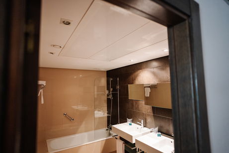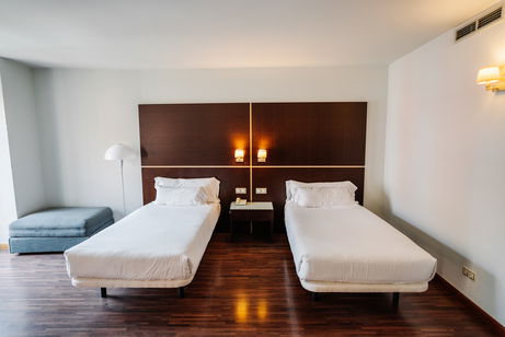 Cette chambre élégante présente une décoration moderne, la climatisation/le chauffage, du parquet, une connexion Wi-Fi gratuite et une salle de bains privative. Il dispose de 2 lits.