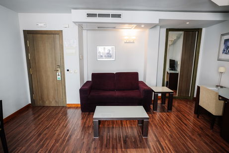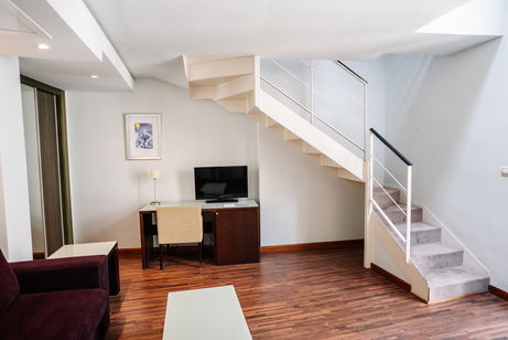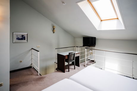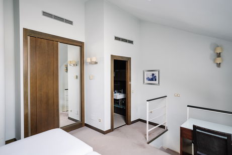 Cette chambre élégante à la décoration moderne dispose de la climatisation/du chauffage, de parquet, d'une connexion Wi-Fi gratuite, d'un salon séparé avec télévision au rez-de-chaussée et à l'étage, d'une chambre à coucher et d'une salle de bains privative. Elle dispose de 2 lits.